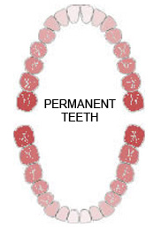 Central incisors | Between 7 and 12 months | Between 6 and 8 years |